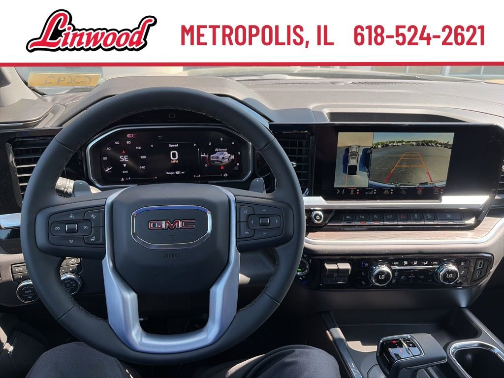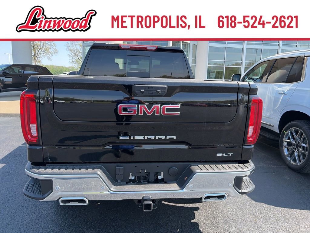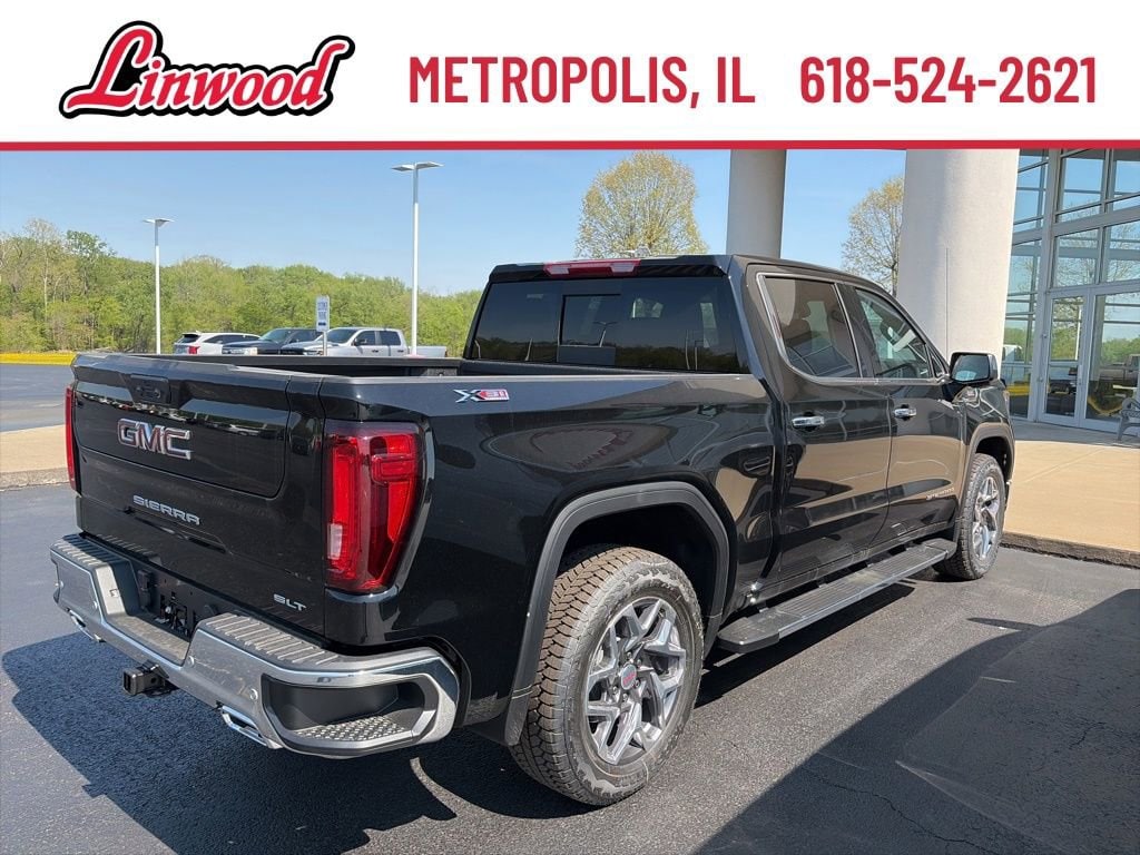 Onyx Black 2026 GMC Sierra 1500 SLT 4WD 10-Speed Automatic 3.0L I6 Apple CarPlay, Android Auto, Leather Seats, Navigation System, Bluetooth, Backup Camera, Remote Start, 10-Speed Automatic, 4WD, Jet Black Leather, Hitch Guidance, Navigation System, Standard Suspension Package, Trailering Package.