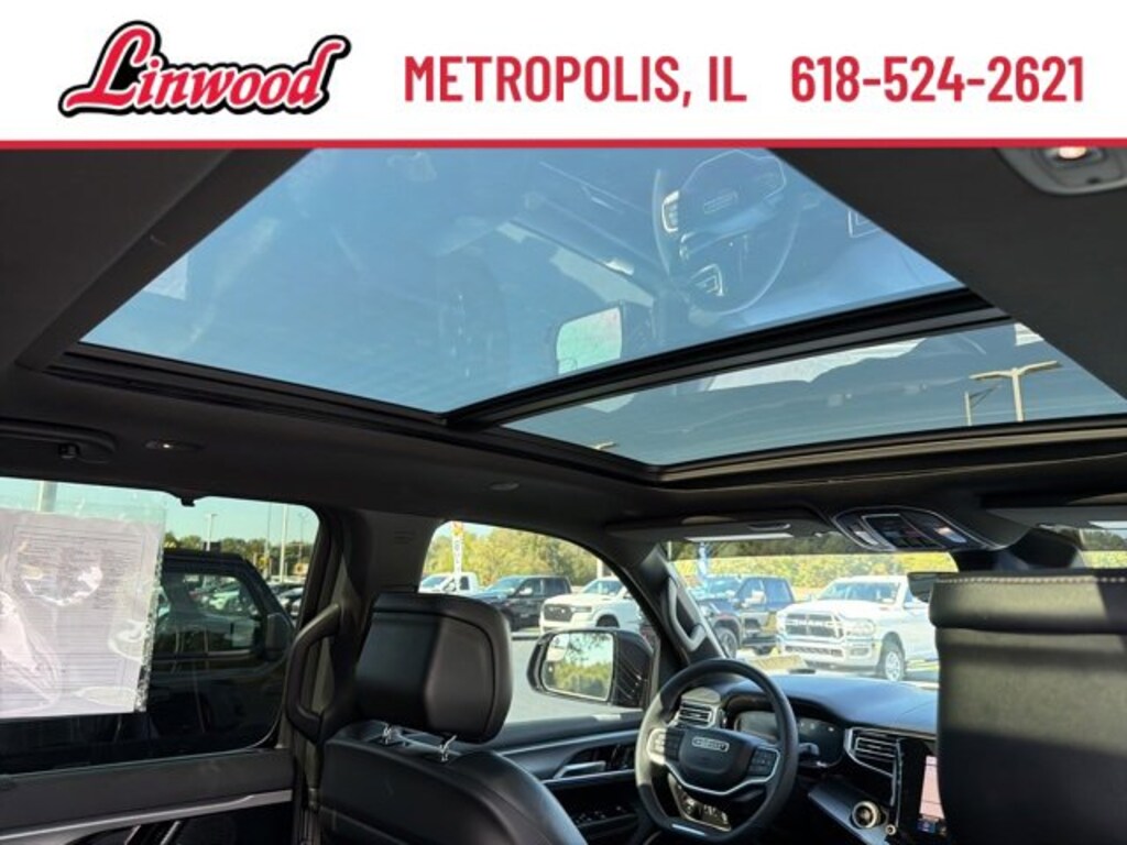 CARFAX One-Owner.Silver Zynith 2023 Jeep Wagoneer Series II 4WD 8-Speed Automatic 3.0L I6Apple CarPlay, Android Auto, Leather Seats, Bluetooth, Backup Camera, Remote Start, 2nd Row Manual Window Shades, 3 Panel Sunroof, 60/40 Power Recline 3rd Row Seat, 7-Passenger Seating, Adjustable Roof Rail Crossbars, Auto High Beam Headlamp Control, Black Interior Accents, Carbide Appearance Package, Cargo Cover, Convenience Group I, Drowsy Driver Detection, Exterior Parking Camera Rear, Flexible Seating Group, Floor Console w/Cupholder, Fully automatic headlights, Heads-Up Display, Heated Second Row Seats, Intersection Collision Assist System, Navigation System, P&P Park & Unpark Assist w/Stop System, Piano Black Exterior Accents, Power Liftgate, Power Tip/Slide Recline 2nd Row Buckets, Quick Order Package 25F Carbide, Reversible Carpet/Vinyl Cargo Mat, Security system, Side Distance Warning, Speed control, Surround View Camera System, Traffic Sign Recognition, Wheels: 20 x 9 Gloss Black Painted Aluminum.Recent Arrival!Linwood Motors is dedicated to providing the best customer service experience for all of our customers regardless of the reason you're coming to see us. Come see us today and let us show you how you're a part of the family!